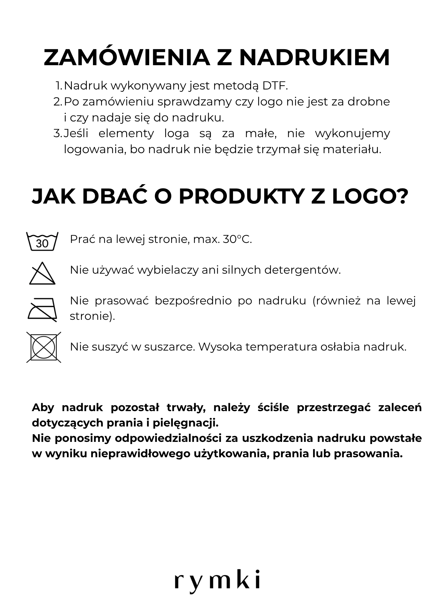Personalizacja w formie nadruku na koszulce jest możliwa. Załącz swoje logo w WEKTORACH (pdf, eps lub ai) na maila: sklep@rymki.com. Nie akceptujemy plików PNG i JPG.